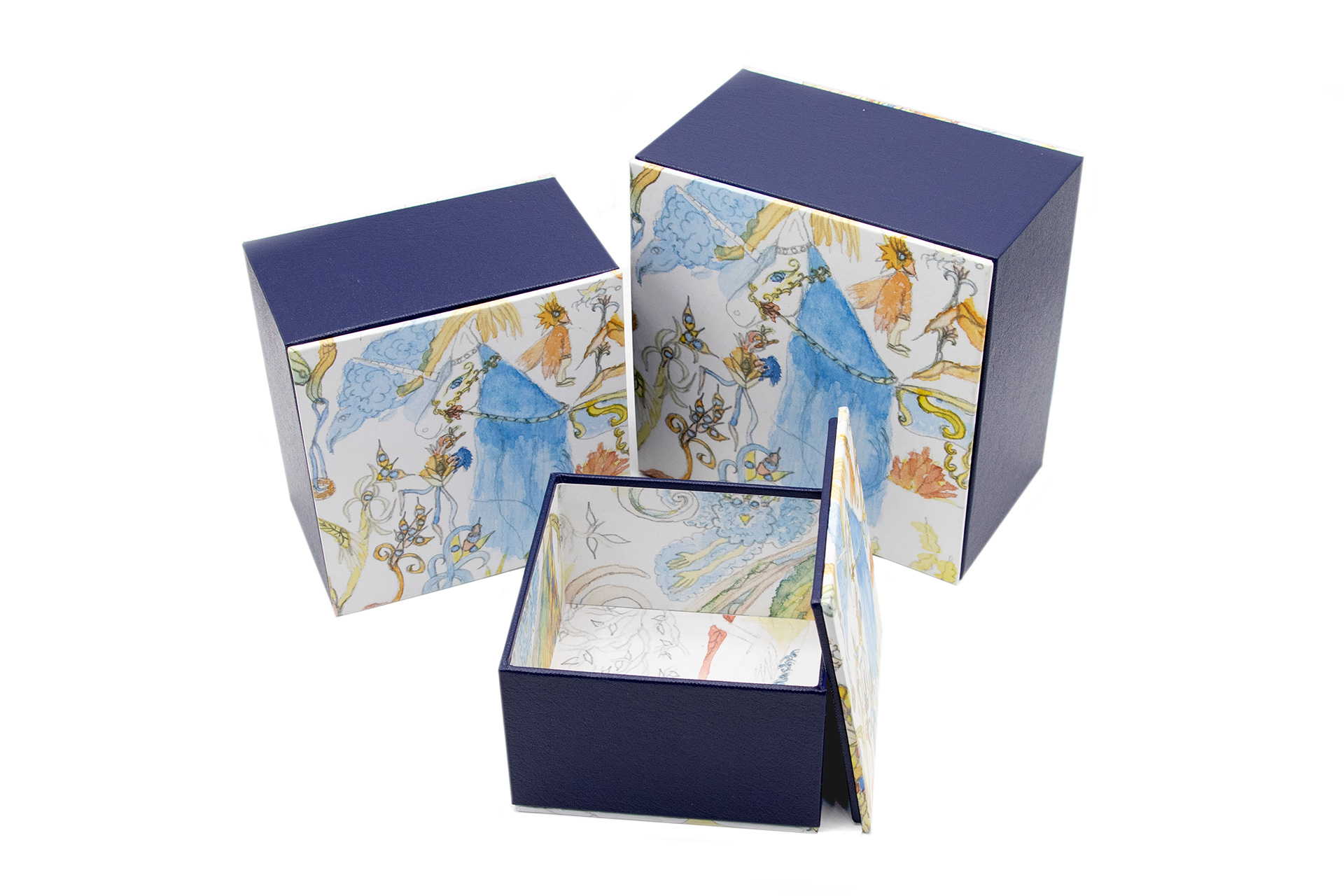 Geben Sie Ihrer Schmucksammlung ein Zuhause! Die Schmuckdosen im farbenfrohen Design bieten genug Platz für Ihre liebsten Stücke. Dazu können Sie aus drei Ausführungen wählen. Klein: B 9,7 cm, H 9,7 cm, T 6,6 cm, Mittel: B 11,4 cm, H 11,4 cm, T 7,4 cm und Groß: B 13,5 cm, H 13,5 cm, T 8,4 cm. Sie sehen, es ist für jede Sammlung etwas dabei. Die rechteckige Bauweise ist dabei schlicht aber elegant und äußerst robust. Der passgenau gefertigte Deckel sitzt perfekt, um Ihren Schmuck und weitere Gegenstände sicher zu verwahren, lässt sich aber komfortabel genug öffnen und schließen, damit sie ihren Schmuck im Handumdrehen an- oder ablegen können. Erfreuen Sie sich zudem an dem selbstgestalteten fungalen Design in warmen Rot- und Gelbtönen. Das handgemalte Muster setzt sich über die Seitenwände und den Deckel fort – so ist Ihre neue Schmuckdose in jedem Fall ein absoluter Hingucker und der ideale Platz für Ihre Ringe und Ketten.