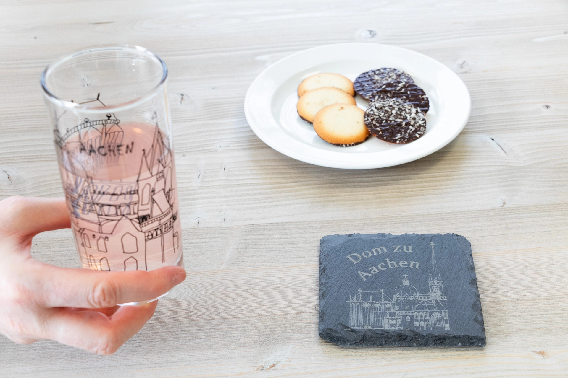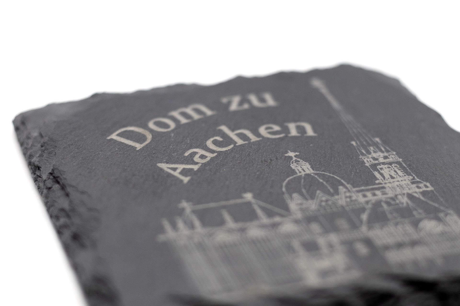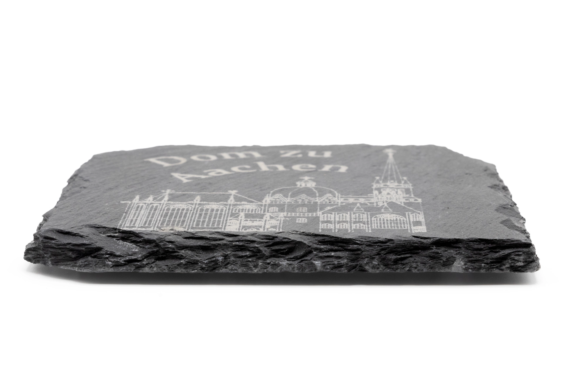 Um Flecken auf dem Tisch zu vermeiden, nutzen Sie Untersetzer. Aber die sind nicht immer schön. Ändern Sie das mit unseren edlen Schieferuntersetzern. Das wunderbare Naturmaterial sieht einzigartig aus und macht auf dem Tisch einiges her. Vier Schaumstoff-Noppen auf der Unterseite verhindern, dass ihr Tisch Kratzer abbekommt. Als Highlight kommt der Untersetzer mit einer detaillierten Gravur des Aachener Doms und dem Schriftzug „Dom zu Aachen“. Diese Untersetzer sind für jeden Aachen-Fan eine echte Bereicherung. Die Größe des Untersetzers beläuft sich auf B 10 cm, H 0,2 cm, T 10 cm.